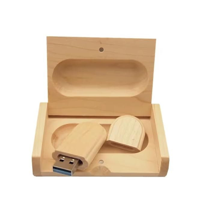 CleverlyGifted® 64GB 2.0 Wooden Box Oval USB Flash Drive with Gift Box